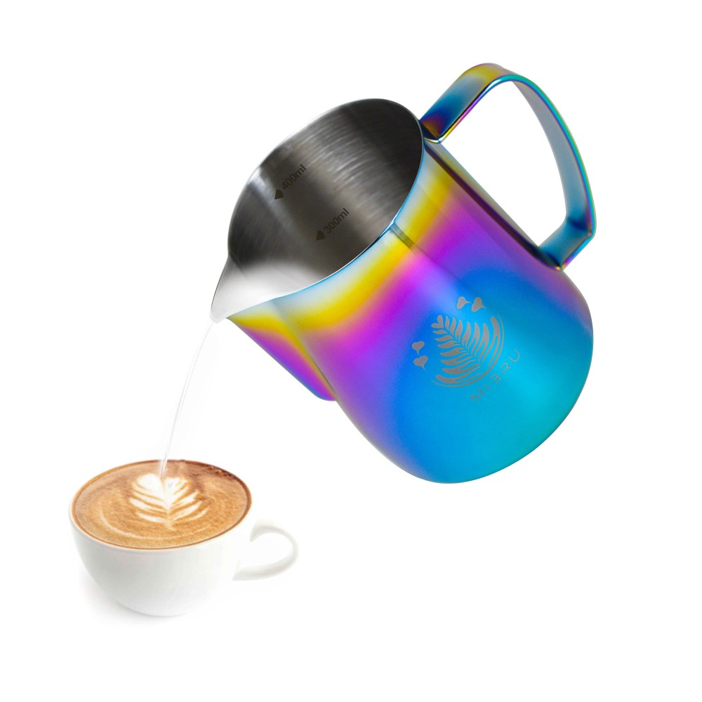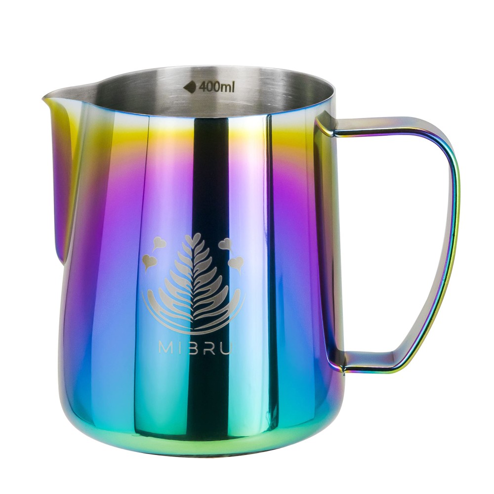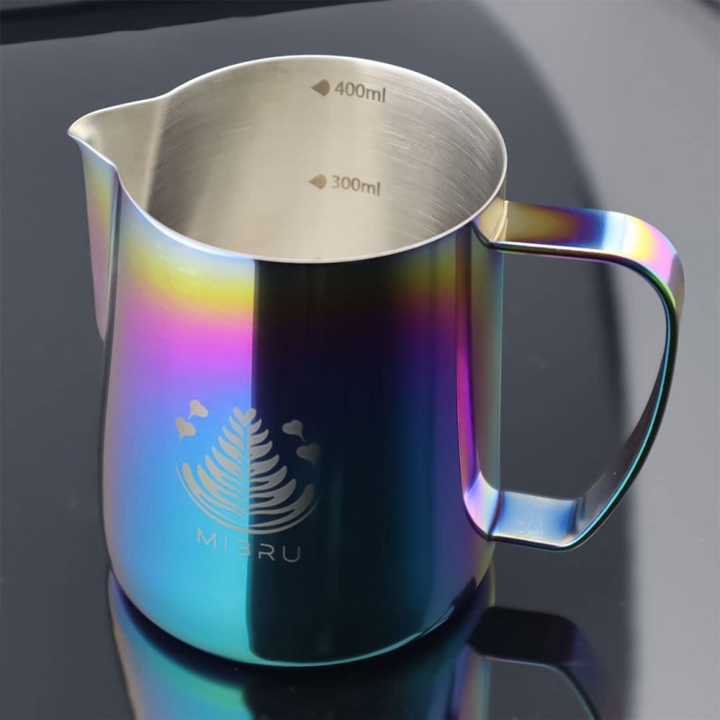 - خليك باريستا بنفسك مع بتشر تبخير الحليب من ميبرو سعة 400 ملي ابريق تبخير بفوهة حادة مناسب للرسم لمحبي اللاتيه والفلايت وايت من الستانلس ستيل بتصميم عصري ولون مميز و فريد