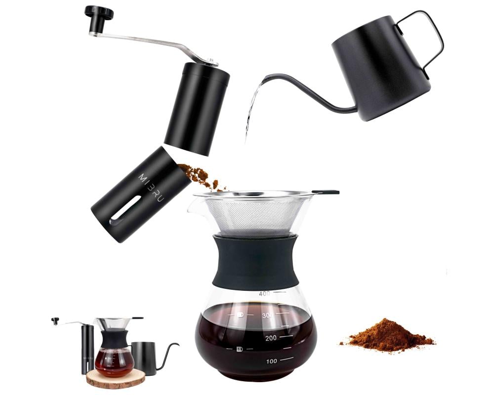 خليك باريستا بنفسك مجموعة تقطير القهوة 4 في 1 بفلتر قابل للغسل واعادة الاستخدام مجموعة لعشاق القهوة المقطرة
