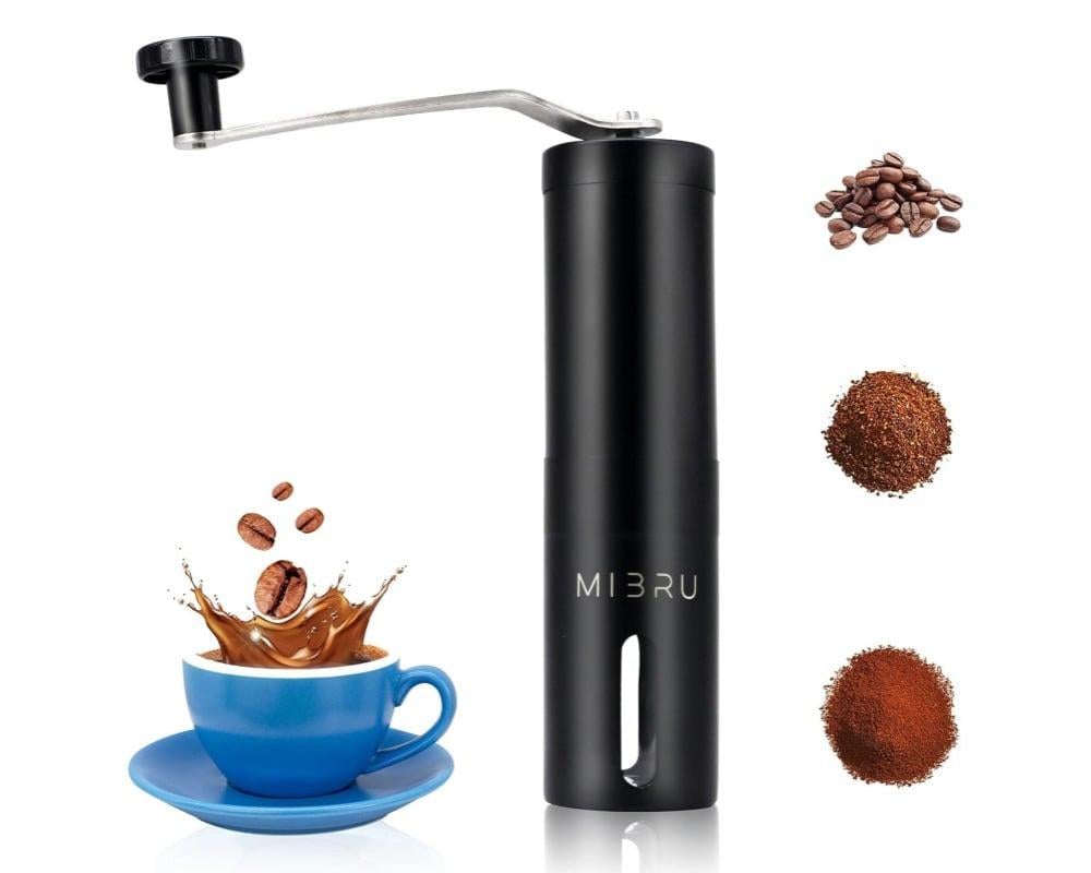 1-مطحنة حبوب القهوة اليدوية المحمولة اسود مخروطية الشكل من الستانلس ستيل المصقول قابلة للتعديل لطحن البن الطازج