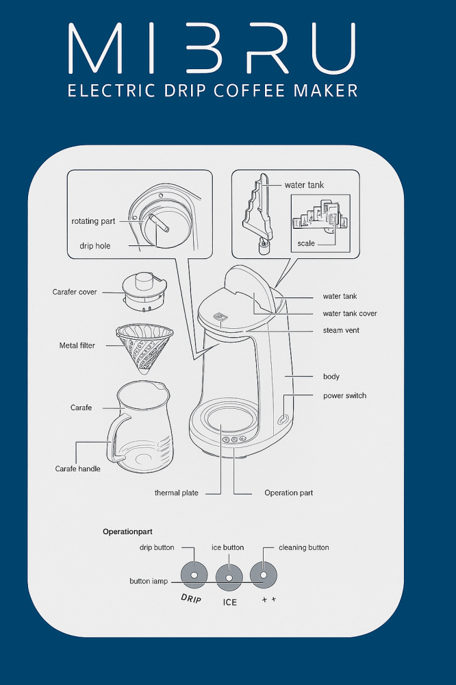 ماكينة صنع القهوة الكهربائية بالتقطير ، وهي مصممة لعشاق القهوة المختصة الذين يفضلون طريقة التقطير (Drip Coffee) لكن مع راحة التشغيل الآلي. تتميز الماكينة بتصميم عصري وأنيق باللون الأسود المطفي الذي يتناسب مع أي مطبخ حديث.