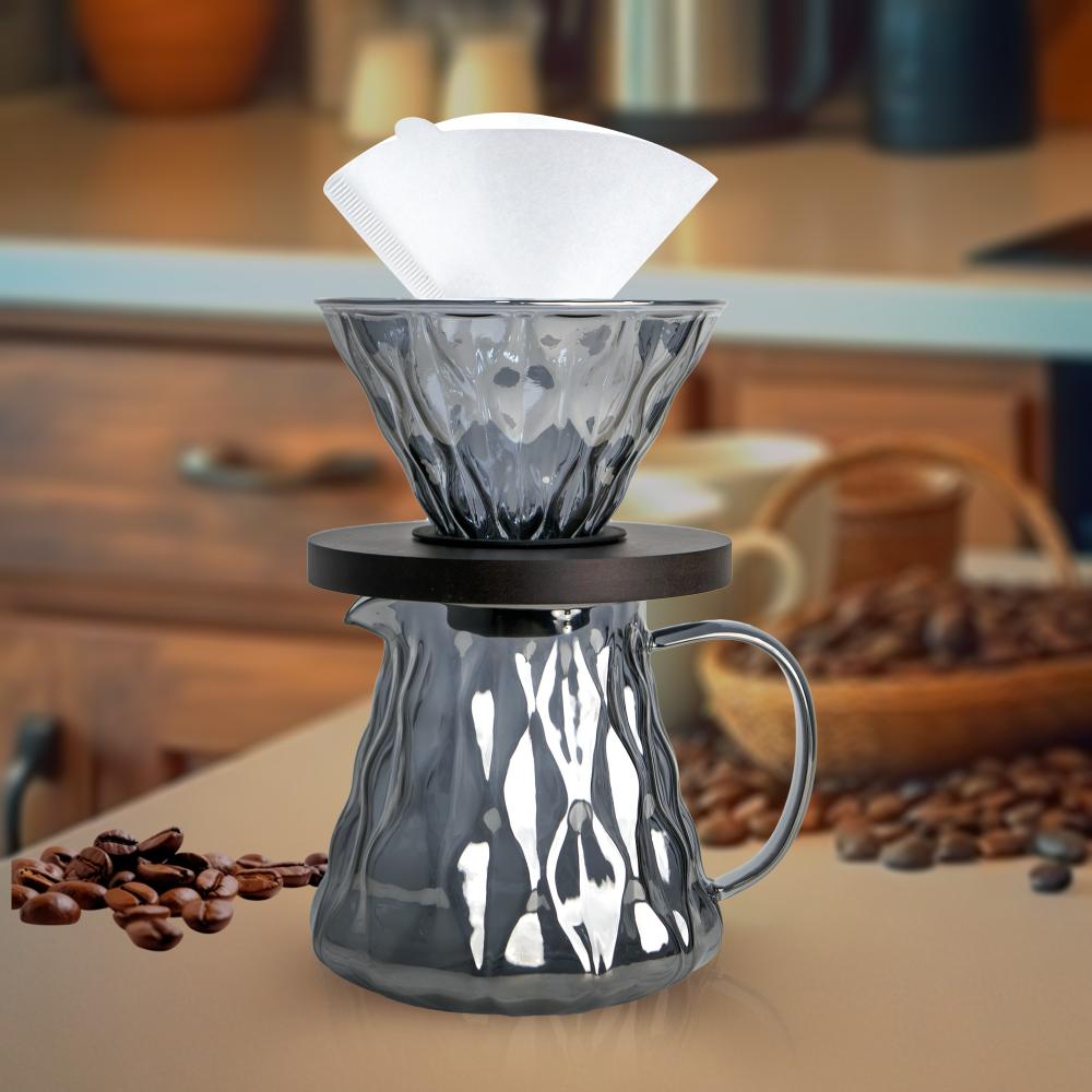 . جودة المواد: مصنوع من الزجاج عالي الجودة المقاوم للحرارة، مما يضمن متانة وأداء ممتاز عند تحضير القهوة الساخنة.