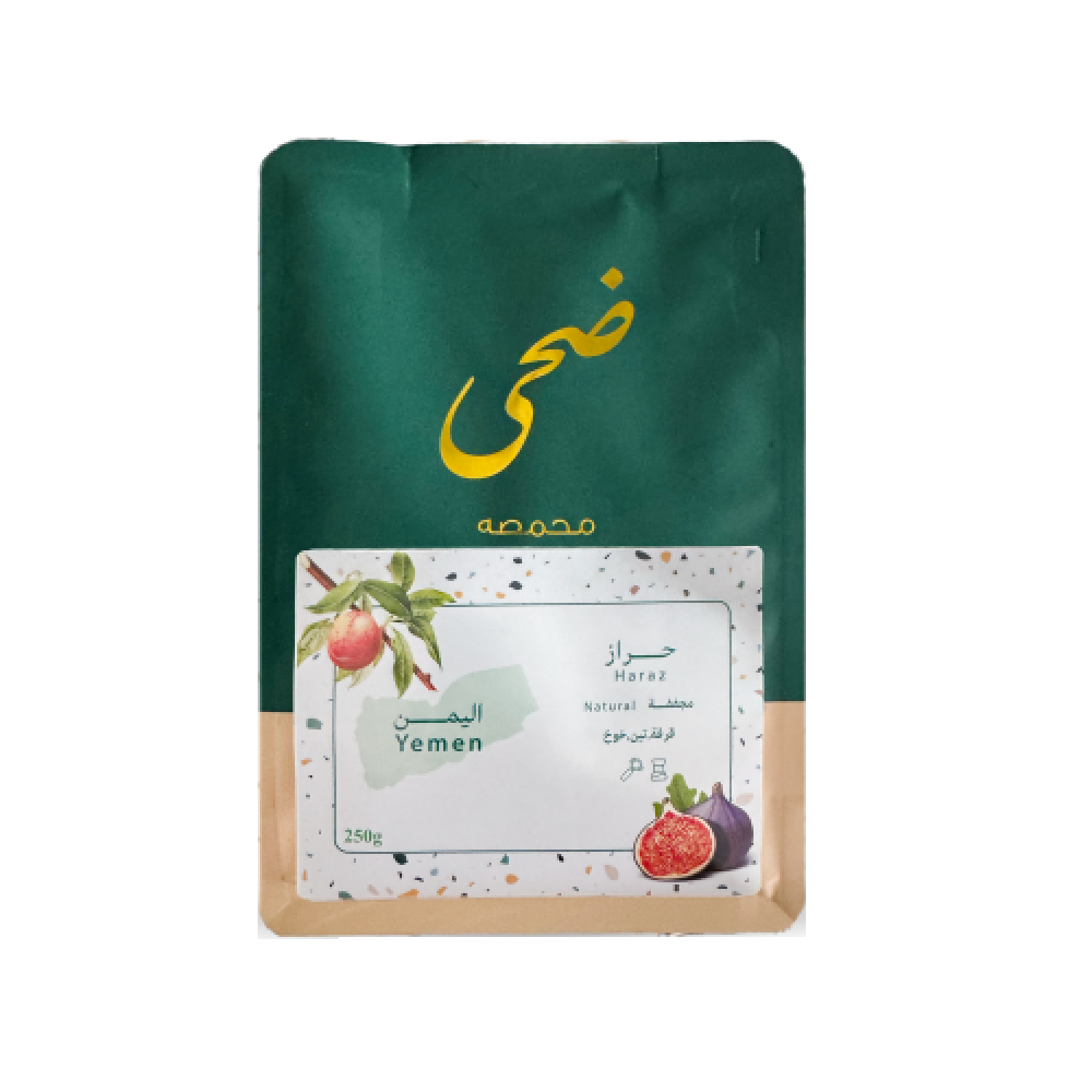 محصول اليمن حراز من محمصة ضحي تأتي من جبال حراز باليمن وبمعالجة مجففة. القهوة التي تجسد تاريخًا عريقًا من زراعة البن في جبال اليمن الخلابة. هذا المحصول الاستثنائي يتميز بإيحاءات فريدة من القرفة العطرية، التين الناضج، والخوخ اللذيذ، ليقدم تجربة تذوق غنية ومعقدة تناسب محبي الإسبريسو والقهوة المقطرة على حد سواء.