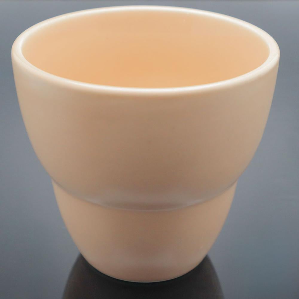 الألوان: الكوب بلون بيج فاتح أو كريم، يعطي شعوراً بالدفء والبساطة.