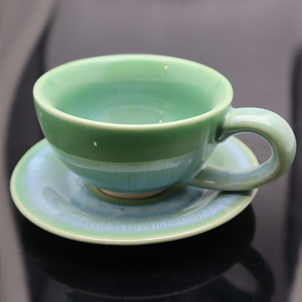 تصميم متناسق: الكوب والصحن مصممان ليكونا قطعة واحدة متكاملة.