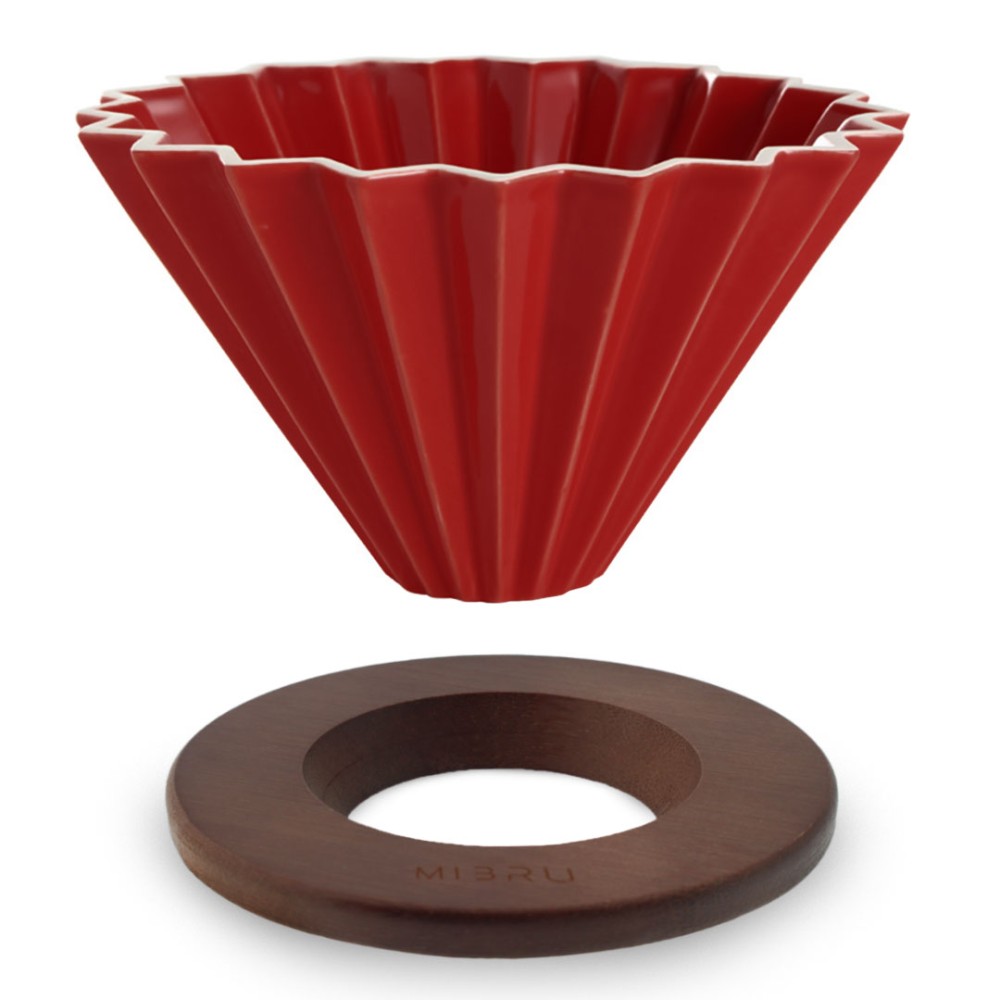 قمع في 60 تقطير وترشيح القهوة مموج بالتنقيط سيراميك بحلقة خشبية مقاس v02 يكفي 1 الى 2 اكواب احمر تصميم اوريغامي