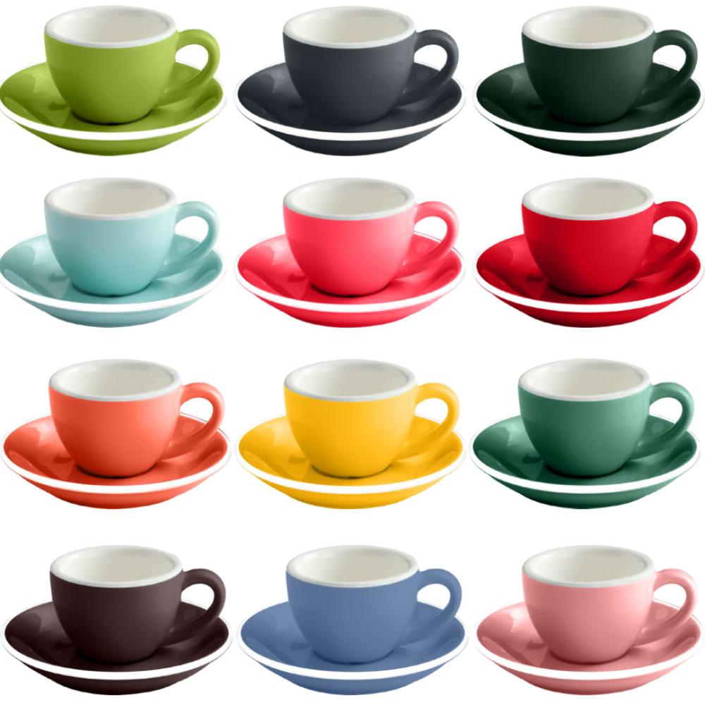 خليك باريستا بنفسك مع كوب قهوة سيراميك مع صحن ( 75 مل ) اكواب قهوة مختصة من السيراميك وتاتي بعدة الوان