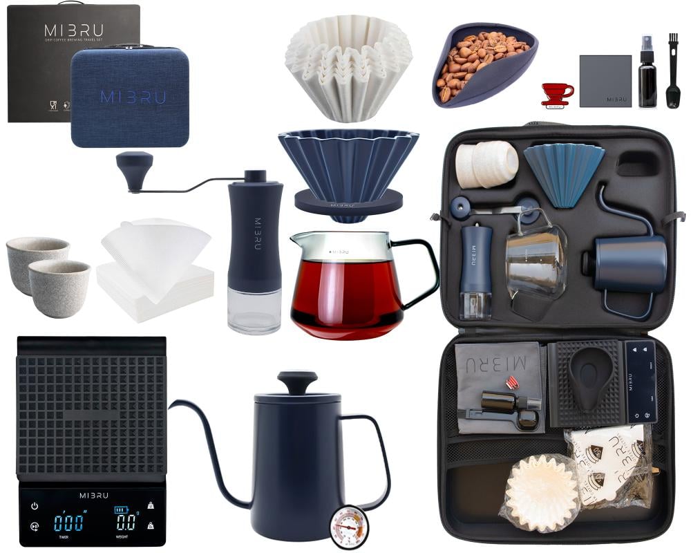 - خليك باريستا بنفسك وانت في بيتك حقيبة قهوة من ميبرو مقسمة من الداخل مجموعة شنطة ادوات القهوة المختصة للسفر تحتوي على 14 قطع مجموعة ماكينة تحضير القهوة بالتنقيط