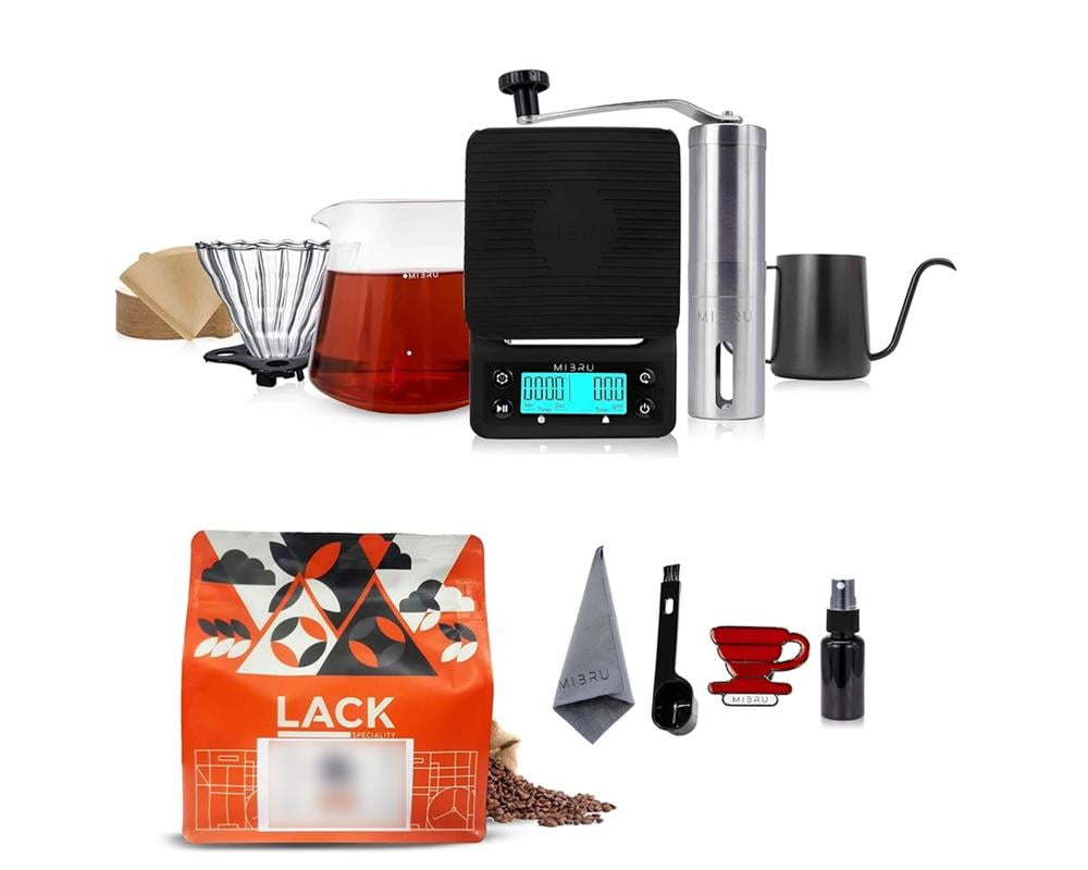 خليك باريستا بنفسك مجموعة بكج صانعة القهوة في 60 الاحترافية طقم تقطير القهوة المختصة مع حبوب بن مناسبة للقهوة المقطرة والاسبريسو تحتوي :
