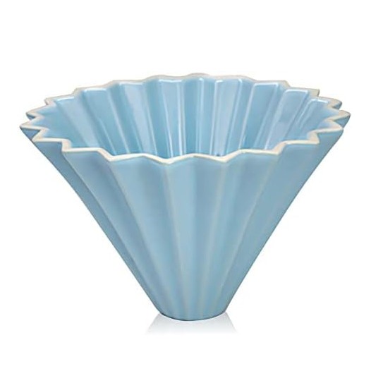 قمع في 60 تقطير وترشيح القهوة مموج بالتنقيط سيراميك بحلقة خشبية مقاس v02 يكفي 1 الى 2 اكواب ازرق سماوي تصميم اوريغامي