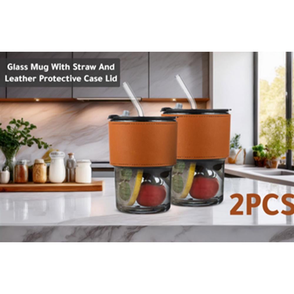 كوب قهوة و المشروبات الباردة بحامل جلدي سعة 400 مل عدد 2 كوب