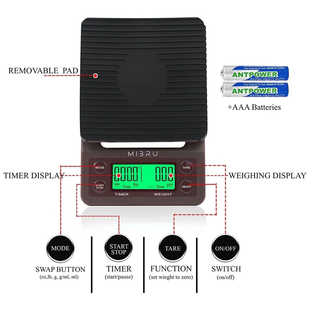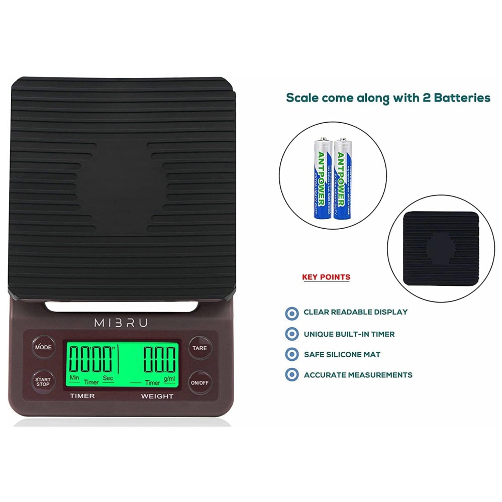 مقياس قهوة مع مؤقت من ميبرو، مقياس طعام للمطبخ عالي الدقة مع وظيفة تفريغ