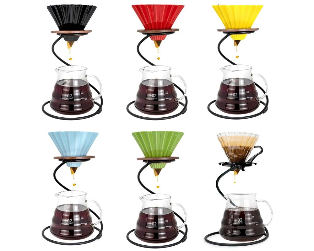 خليك باريستا بنفسك مع مجموعة تقطير لمحبي القهوة المقطرة مع قاعدة بالتنقيط حلزونية من الحديد تحتوي على 4 ادوات تحضير القهوة
